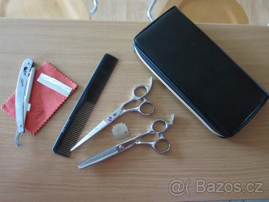 Prodám minimálně použité profesionální kadeřnické nůžky.Dárek k Vánocům a od února jsem na mateřské a již nevyužiji :)Sada obsahuje: nůžky 6, efilačky 6, hřeben, břitva, pouzdro(vše nafoceno)