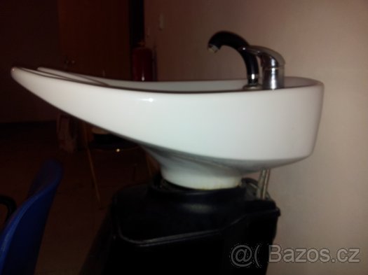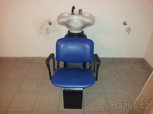Prodám požitý kadeřnický mycí box - křeslo s umyvadlem a sprchou. Je plně funkční. Na noze ve spodní části je trochu oprýskaná barva.