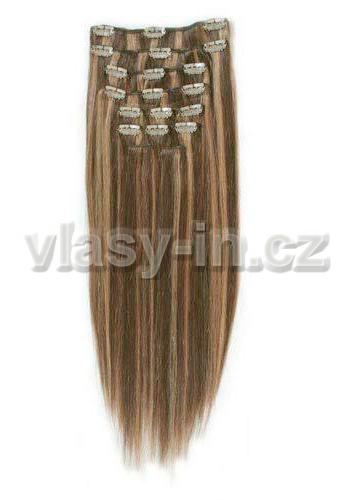 CLIP IN sada osmi pásů hedvábných rovných vlasů na clip-in sponkách. Sada prodlouží vlasy rovnoměrně po celé hlavě.